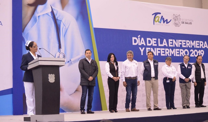 El mandatario presidió en esta capital los festejos del Día de la Enfermera y Enfermero 2019, acompañado de la secretaria de Salud, Gloria Molina Gamboa, representantes de las instituciones que conforman el sector, hospitales privados y más de mil 500 profesionales de la enfermería del centro del estado.