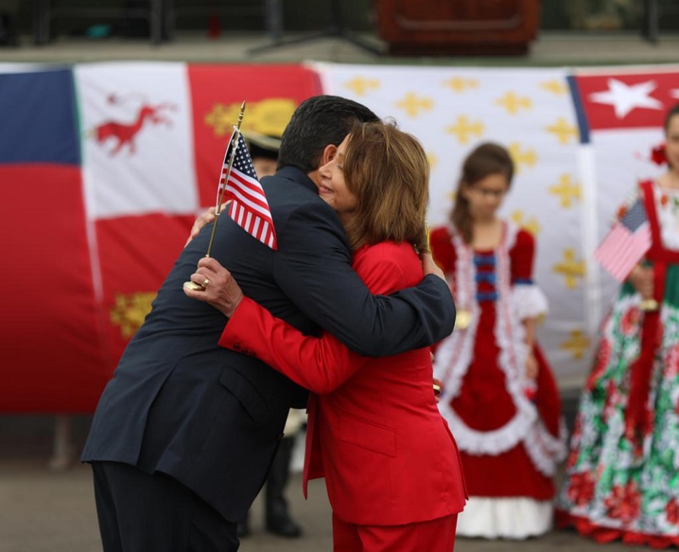 Une abrazo fronterizo al Gobernador Cabeza de Vaca y la Presidenta del Congreso de Estados Unidos, Nancy Pelosi